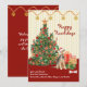 Feliz Natal Feriados - Um Cartão de Natal Feliz de Welsh Terrier é festivo e elegante. Os ornamentos de aquarela pintados à mão, em uma árvore ponteada em estrela e presentes especiais, até mesmo um osso para o cachorro envia uma mensagem de feliz aniversário. Este Cute Welsh Terrier está vestindo seu chapéu especial de Papai Noel vermelho. O fundo da design é uma faixa amarela e cremosa com uma terra de estrelas cintilantes de ouro. Todo o texto é editável, do "Feliz Howlidays" à mensagem de Natal com seu nome de família e cão. Use a opção PERSONALIZAR para torná-la sua. A parte traseira do cartão é um vermelho correspondente à garland e uma mensagem de feriado editável. Você encontrará este belo cartão de Natal junto com muitas outras raças de cães em nossa coleção de HOWLIDAYS FESTIVOS FESTIVOS FELIZES, em nossa loja. Mensagem se precisar de ajuda.