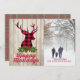 Envie este cartão de Natal para a sua família e amigos nesta temporada. Adicione uma foto pessoal. Há uma grande silhueta de um veado xadrez vermelho e preto com um grande rack de chifres. Pelo pescoço dele estão folhas verdes. Em todo o cartão está escrito "Felizes Feriados". Personalize com seu nome de família na parte inferior.