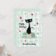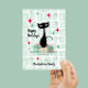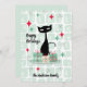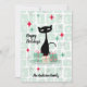 Uma design de Natal retrormoderna com um padrão de blocos desfocados com um gato negro clássico do médio século-preto. O cartão pode ser personalizado na frente com o nome da família e no verso com sua mensagem, nome da família e ano. Perfeito para o teu decoro de férias e cartas!
