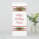 Adicione um toque festivo aos seus eventos de Natal e Férias com este cartão de jantar de Natal de Férias Felizes, desenhado em vermelho e branco. O texto frontal inclui: Menu Feliz Feriados, em letras vermelhas sobre um fundo branco e aparado com folhas ocas e listras vermelhas. O verso inclui as Seleções de Apeticionário, Entre e Deserto em texto branco sobre um fundo vermelho. Para personalizar, basta inserir o texto no nosso modelo fácil, substituindo o texto de exemplo. É rápido e fácil