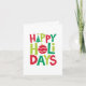 Envie desejos de férias alegres e brilhantes com este cartão colorido que apresenta ilustrações divertidas e alegres como parte da palavra "felizes festas". O interior tem um espaço para saudação personalizada e nome, mas também pode ser deixado em branco.