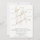 Este belo, moderno branco negro e Dourado Felizmente Depois de ensaiar o Janto O convite apresenta um falso roteiro de caligrafia em folha de ouro lendo 'To Love, Laughter, and Felily Ever After' como o principal elemento design. O design é belamente complementado pela moderna fonte sans serif de boné em preto, sobre fundo branco e nítido, anunciando a data e a localização do coquetel de ensaio. A parte de trás do convite apresenta um trabalho de arte de aquarela preto e branco moderno, para completar o sofisticado design.