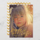 O cartão com fotos de Férias apresenta texto elegante com letra de mão "Felz pascoa" do script + texto do membro da família que pode ser personalizado, e o plano de fundo apresenta um padrão de fevron moderno em ouro brilhante e branco. Para mais ideias do Partido, visite-nos OWLIEPOWLIE.COM