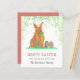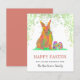 Deseje aos seus amigos e familiares um maravilhoso felz pascoa com este belo coelho colorido de Páscoa e ovos em lindas cores brilhantes com folhagem verde com um tema de terracota. Fácil de personalizar usando o modelo. Arte original moderna da artista Catherine Sweetman