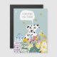 Cartão de páscoa dalmático personalizado. Cartão de páscoa de caça ao ovo de cachorro engraçado. Ilustração perfeita de cão abstrato para amantes de cães! Cachorro bonito, engraçado, pintado dalmaciano com estrelas brancas, ovos de páscoa e flores de primavera em um vaso design. Mãe de cão Dalmaciano, pai de cão dalmaciano, esta é para ti. Também ilustração dalmática de cão para crianças.