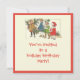 A imagem deste convite foi adaptada de um cartão postal de férias antigo. Mostra quatro crianças de férias com presentes de carregando e uma cesta sagrada.