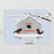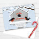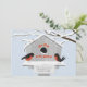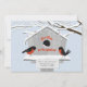 Diga aos seus amigos e familiares que você tem uma nova casa! Estes cartões de anúncio comoventes de 7" x 5", brancos, apresentam dois robins modernos, virados um para o outro em cima da sua poça em frente à sua casa de pássaros, coberta de neve, com neve caindo no fundo em um dia azul do céu. A saudação conta a história, "Novo Ninho para os Feriados." Basta adicionar seu nome e novo endereço.