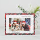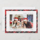 Cartão de feriado com script simples com espaço para 3 fotos em uma tipografia moderna de máquina de escrever rodeada por um bonito padrão de xadrez de búfalo vermelho. Na frente está a sua fotografia de funcionalidade com espaço para mensagens personalizadas e 2 imagens adicionais no verso.