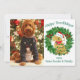 Um rabisco de Ouro de Cartoon Personalizado, Puppy vestindo "Esta é a estação" chapéu de Papai Noel, embrulhado em luzes de natal. Festiva borda da coroa de natal. Personalize com sua foto e seu nome para criar uma placa de cartões de natal exclusiva de amante de goldendoodle! © EMR. Designs.