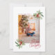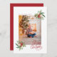 Este belo cartão de Natal apresenta flores brancas e elegantes, cor d'água, vermelhas, com verde em fundo branco, com Feliz Natal em texto vermelho. A parte traseira da placa é vermelha para corresponder à frente.