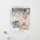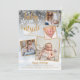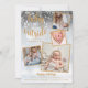 Um elegante cartão de natal de férias de colagem de 4 fotos para você personalizar com suas fotos especiais enquadradas em ouro, mensagem de feriado, nomes e estatísticas de natalidade. Os traços inversos caem flocos de neve num plano de gelo de inverno correspondente. Projetado por Thisnotme©