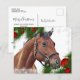 Envie Cartões de natal com este adorável cartão de Natal para Cavalo. Feliz Natal ~ Que sua temporada de festas seja cheia de amor, risos e alegria. Feliz Natal e Feliz ano novo. Personalize com o seu nome familiar e os nomes dos membros da família. Este cartão de natal de cavalo será um favorito entre amantes de cavalos e equestres. Esses cartões postais de Natal preto no labrador, cartazes de natal, precisam ser enviados como cartões postais de tamanho excessivo, de modo que possam ser pagos por correio padrão, mas eles não precisam de um envelope ou etiqueta de endereço de retorno. Visite nossa coleção para combinar cartões de natal de cavalo, decoração doméstica e presentes. COPYRIGHT © 2020 Judy Burrows, Black Dog Art - Todos Os Direitos Reservados. Feriado do Pôneo de Equino de Equina Cuta