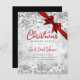 Elegante Formal Company & Corporate Christmas Party / Cocktail / Modelo de Convite de festas Jante com Flocos de Neve Prateados, Glitter Confetti & Red Ribbon. Imprima os seus amigos com este design de convite sofisticado e moderno.