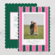 Envie alegria festiva com este Cartões de foto de Natal listrado pré-desidratado com uma charmosa borda escalpada e sotaques rosa e verdes brilhantes. Personalize a frente com sua foto favorita da família e adicione sua própria mensagem de feriado personalizada no verso. Este cartão de Natal personalizado e na moda moderno é a forma perfeita de partilhar desejos calorosos com amigos e familiares num design divertido, colorido e elegante.