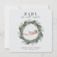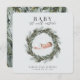 Bebê está frio lá fora. Cartão de Natal de anúncio de nascimento. Design de aquarela de inverno. Quadro atualizado ao redor da fotografia.