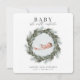 Bebê está frio lá fora. Cartão de Natal de anúncio de nascimento. Design de aquarela de inverno. Quadro atualizado ao redor da fotografia.