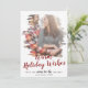 Este cartão com fotos vermelho e quente de feriados noivado é o cartões de natal perfeito e simples para um casal engajado. O design único e artístico apresenta sua foto em pincéis pintados por aquarelas com caligrafia moderna em vermelho e branco.