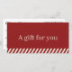 Design de cartão-presente personalizável para profissionais de beleza ou moda. Design simples com fundo vermelho e listras bege.