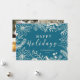 FELIZES FÉRIAS: Quadro botânico brilhante e alegre com poinsettia, sagrada, bagas e folhagem em fundo azul de inverno. Personalize esta elegante placa lisa de saudação de fotos de feriado com seu nome de família e adicione suas fotos favoritas da família. Personalize-o para alterar o layout da foto ou a cor do plano de fundo. Maneira contemporânea, clássica, moderna e na moda de enviar cartões de natal de inverno felizes para amigos e familiares.