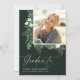O anúncio da graduação de fotos elegante apresenta uma foto quadrada embelezada com folhagem verde de samambaia e flores brancas. "Formando" aparece abaixo, junto com o seu formando e escola ou faculdade. Adicione uma mensagem pessoal ao verso, juntamente com uma foto adicional.