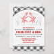 Fervura do caranguejo/convite do assar com um fundo, um caranguejo, uns moluscos, umas bolhas, uma estrela do mar e uma alga do teste padrão do guingão. Fácil personalizar com seu próprio texto. Ilustração original pelo pj_design. Verifique por favor minha loja para ver se há mais como esta.