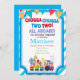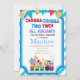 Este design apresenta um trem colorido com animais de desenho animado para uma festa de segundo aniversário de menino.