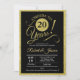 convite de festas de aniversário de casamento em ouro falso e preto. Cartão de convite impresso com fonte elegante de script de tipografia e faixas no verso. Saúde a 20 anos! Pode ser personalizado para qualquer ano de aniversário. Perfeito para uma comemoração de na moda 20.