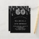 Um convite moderno, elegante e glamoroso para uma festa de 60 anos. Um fundo preto, decorado com confetes prateados. O nome é escrito com uma fonte moderna de letra manuscrita. Personalize e adicione os detalhes da sua festa. O número 60 é escrito com uma fonte de balão trendy, padrão leopardo.