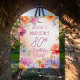 Elegante estilo boêmio flores de áster design floral "Festa de 80 Anos" design, apresentando uma moldura floral de ásteres em uma variedade de cores, incluindo rosa magenta roxo e amarelo dourado e manteiga, em um fundo de aquarela em tons pastéis.