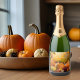 A Elegante empresa personalizada que deu as etiquetas de uma garrafa de champanhe da festa de Ação de Graças com abóboras bonitinhas de outono e flores de sol que decoram a frente sob o seu nome comercial e uma saudação de Feliz Ação de Graças. Presente de feriado corporativo para clientes.