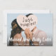 Um elopemento moderno ou um cartão de anúncio de casamento menor para que a família e os amigos saibam que seus planos de casamento mudaram, exigindo que você fuja ou reduza o número de convidados no seu casamento para um pequeno grupo íntimo, mas que você vai receber uma festa de celebração no futuro. Sua foto de casamento preenche a frente do cartão, com "Casado Agora, Festa Mais Tarde" escrito em cima dele em um roteiro branco de na moda. Seus primeiros nomes e data de casamento estão por baixo. No verso, você pode personalizar sua mensagem em mais detalhes.