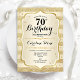 Convite de aniversário 70. Design floral elegante em ouro. Apresenta fitas de ouro com brilho sutil, fonte de script na moda e confetti. Perfeito para uma festa de aniversário de vidro.