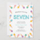 Tenha uma festa de aniversário 7 sorvete para a sua pequenina! Este adorável convite de aniversário apresenta sorvetes coloridos de aquarela do arco-íris que são bonitos e perfeitos para um aniversário de verão. Todos os detalhes, incluindo (exceto idade), são personalizáveis. (Outras idades e cores também disponíveis no meu compro!) © Mini Moi Impressões