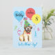 Vocês são convidados para uma pata de aniversário com este filhote de Terrier, vestido por chapéu, fofo, molhado, rodeado por balões e galerias coloridos. O texto pode ser facilmente personalizado. Fornecimentos correspondentes disponíveis.