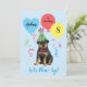 Vocês são convidados para uma pata de aniversário com este filhote rottweiler giro, sorridente, vestindo chapéu de festa, cercado por balões e galerias coloridos. O texto pode ser facilmente personalizado. Fornecimentos correspondentes disponíveis.
