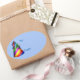 Um adesivo de etiqueta de presente de festa mostrado com um bonitinho chapéu de aniversário. Texto de Para: & De: no adesivo para o destinatário do presente. Personalizar ou comprar como está.