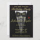 Convite de festa de aniversário com smoking preto e fundo de noite estrelada.