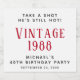 Rótulos de garrafa de licor divertida para sua festa de aniversário de 40 anos. Personalize o texto "Tome uma Fotografia Ele Ainda Está Quente" se desejar, "Vintage" com o ano em que foi nascer, seu nome e a data da festa.