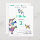 Uma coleção de cabras coloridas e psicodélicas em cor-de-rosa, roxo, azul, laranja, amarela e aqua vibrante, com cabra-leiteira, cabra-bebê e cabras em cabras. Um convite de festas multicolorido bonito personaliza para qualquer idade. Este convite de festas fazenda divertido é fácil de personalizar para criar um convite de festas único adequado para crianças e amantes adultos de cabras. Arte original da artista Catherine Sweetman