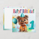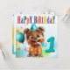 Terrier Fofo com Chapéu de Festa e Corneta, Celebra o Aniversário.