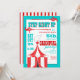 Um design divertido dá as boas-vindas aos convidados para se aproximarem do evento principal! Apresentando uma tenda de circo listrada vermelha e branca brilhante, tocada com um elefante balanceador. Este convite contém todas as informações do evento em um formato fácil de personalizar. Uma forma excelente de construir o entusiasmo de seus convidados enquanto eles antecipam a celebração de aniversário do carnaval ou do circo que está planejada para seu filho ou filha!