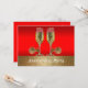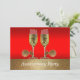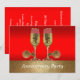 Este convite temático do oeste tem taças de champanhe com esporas em um fundo vermelho e dourado. O texto na frente diz Festa de Aniversário, mas pode ser alterado usando o botão personalizar para editar o texto.