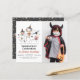 Prepare-se para uma festa de Halloween inesquecível! Do lado esquerdo, este convite dinâmico e orçamentário apresenta uma cena desenhada à mão de um esqueleto dançarino, dois fantasmas maliciosos, e um morcego baleado, todos cercados por um conjunto assustador de elementos do Dia das Bruxas - criaturas rastejantes, ossos esquisitos, um crânio, e pontos decorativos de preto e laranja. Por baixo dessa cena encantadora, a emoção continua com a "celebração espetacular" apresentada na encantadora tipografia serif, seguida pelo nome e idade do aniversário mostrados em roteiro. Os elementos essenciais - data, local e tempo - são completamente divididos em três seções por divisores de linha verticais elegantes. No lado direito deste convite, há uma foto personalizada do aniversariante. Uma versão sem foto está disponível em nossa loja. A parte traseira da placa mostra um padrão dos caracteres do Dia das Bruxas contra um pano de fundo sutil da cinza. Enquanto usamos texto de aniversário no modelo, sinta-se à vontade para personalizá-lo para uma festa de fantasia ou qualquer extravagância do Halloween. Personalize este convite sem esforço com a ferramenta design do Zazzle. Como parte da seleção orçamentária no Zazzle, esta folha não é um tamanho de convite padrão ou qualidade de papel. Se quiser que este design num cartão de convite o encontre na nossa loja ou utilize o Zazzle Make Machine para o transferir para o produto da sua escolha. Se tiver alguma pergunta ou pedidos especiais, não hesite em nos contactar. Lembre-se de que os pedidos existentes não podem ser modificados, portanto, certifique-se de se conectar conosco primeiro. Procure nossa coleção para mais convites para festas do Dia das Bruxas!