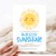 Convite de aniversário engraçado de ilustração do sol amarelo bonito. Design de ilustração do arco-íris amarelo. Parte de uma coleção.