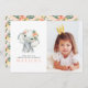 Convite de aniversário de fotografia de uma menina elefante de aquarela. Com delicado fundo floral e ilustrações impressionantes de elefantes. Parte de uma coleção.