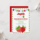 Um belo convite de aniversário de morango para sua aniversária. Apresentando 2 morangos doces, bandeiras e bordas agudas ponto. Em vermelho, verde e azul. Excelente para idades: 1rua segundo 3.o 6 5 4.o 7 8.o 9.o 11 10.o 12