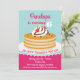 Um convite divertido para o aniversário de uma menina, em aqua e rosa quente com panquecas jovens e um belo cesto escalpado. Este convite do Pancake funciona como excelente para 1rua segundo 3º 4º 5 7 8º 9º 10º 11 e 1º