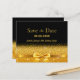 A festa de aniversário elegante, clássica, glamourosa e feminina (ou qualquer idade) salva a data. Uma fita e um arco dourados falsos. Fundo preto. Com o texto: Salve a data na frente, escrita com letras de bloco modernas. Personalize e adicione a data e o nome/texto.