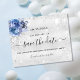 Uma cinta e moda Salve a placa Date para uma festa de aniversário 50th (ou qualquer idade). Um clássico fundo metálico falso prateado, decorado com poeira falso prateada e flores azuis. Personalize e adicione uma data e nome/idade. O texto: Salvar a Data é gravado com um script de estilo com letra de tendência grande.