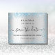 Uma cinta e uma moda Salve a placa Date para uma festa de aniversário 18th (ou qualquer idade). Um fundo com aspecto fino prateado decorado com poeira brilhante azul. Personalize e adicione uma data e nome/idade. O texto: Salvar a Data é gravado com um script de estilo com letra de tendência grande.